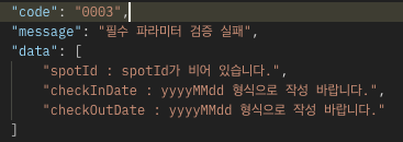 .message(ResponseCode.RESPONSE_0003.getDefaultMessage()) // 파라미터 유효성 검사 실패!